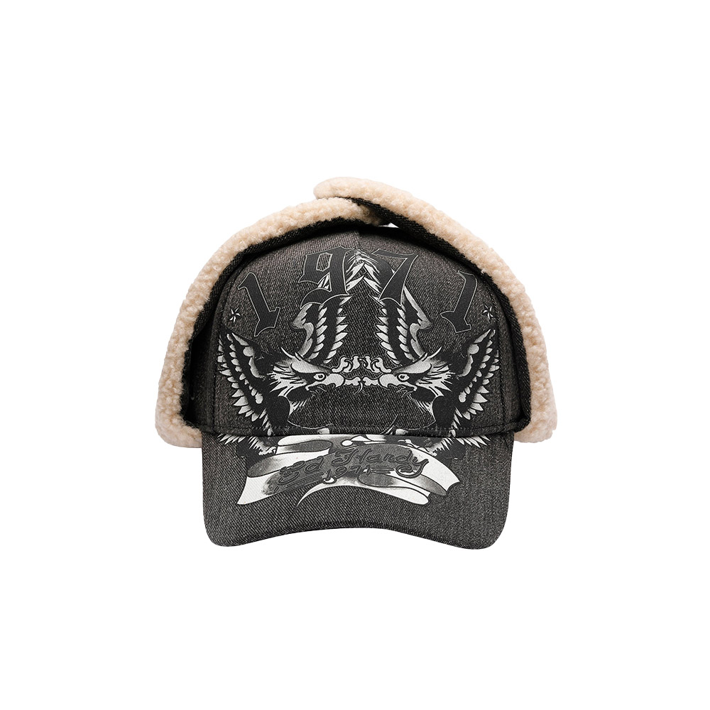 ED HARDY Cappello 5 Panel Trap Per Cap 1971 Eagle Acid Wash Black