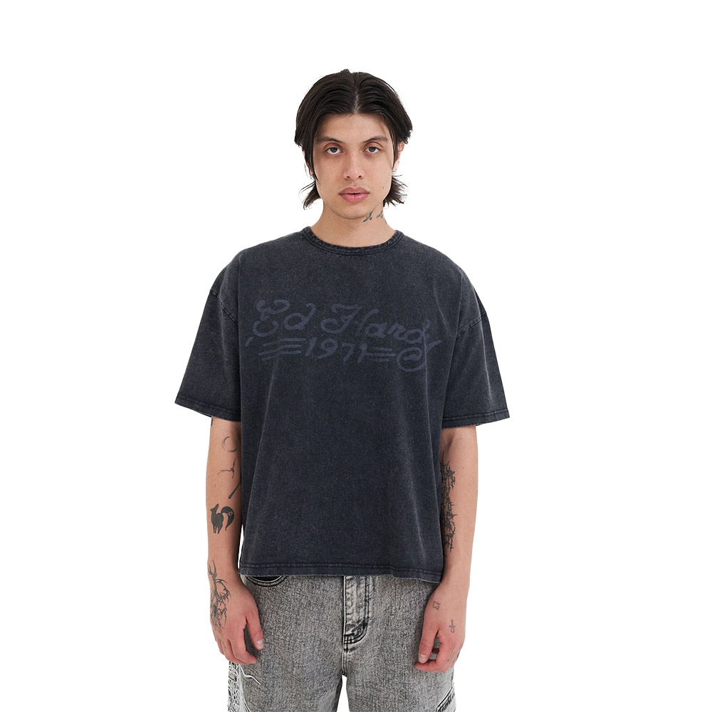ED HARDY Maglietta Maniche Corte Boxy Tee Snake And Drag 1971 Black